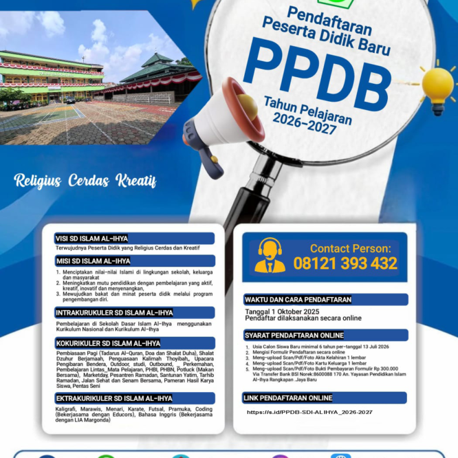 PPDB Sekolah Islam Al Ihya (TK-SD) sudah dibuka sejak 1 Oktober 2025, saat ini masih